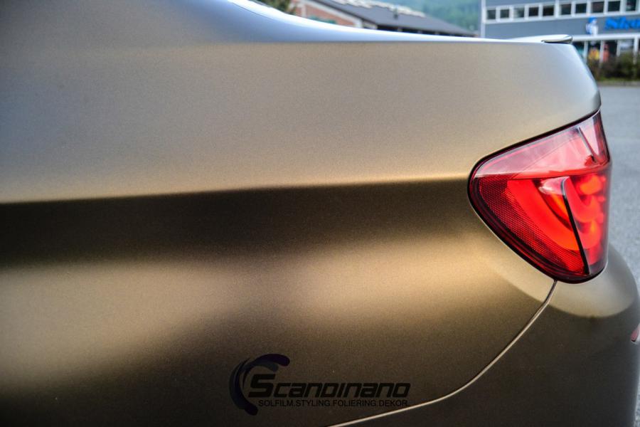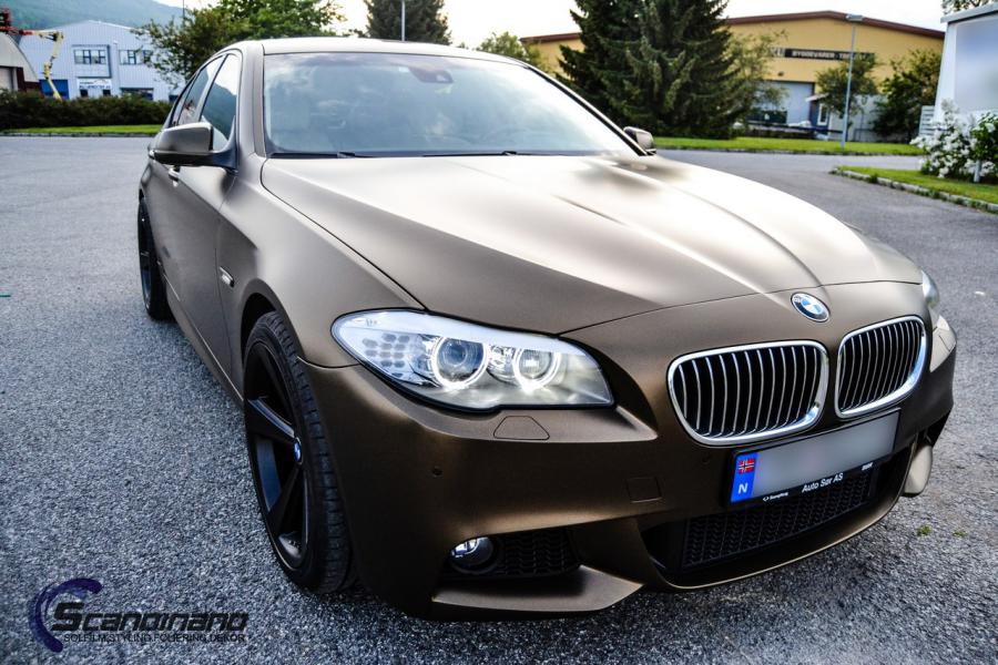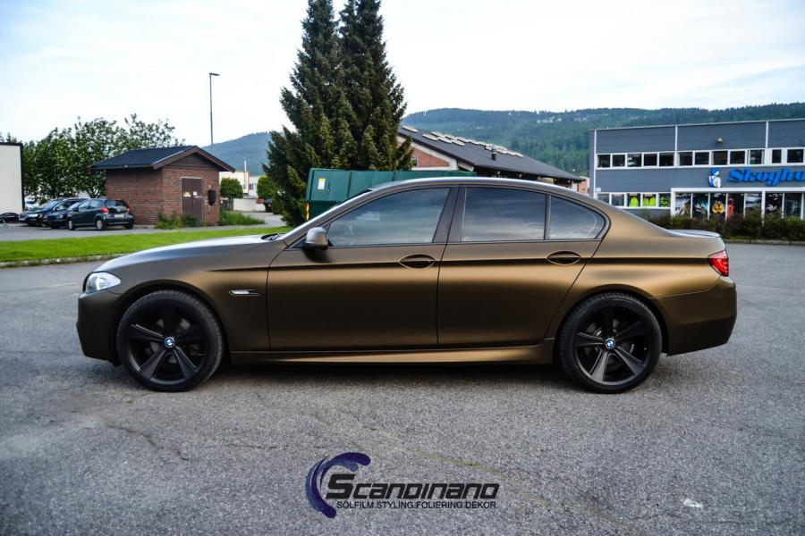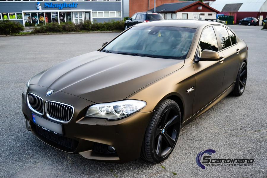 BMW 5 serie foliert i matt bond gold fra pwf